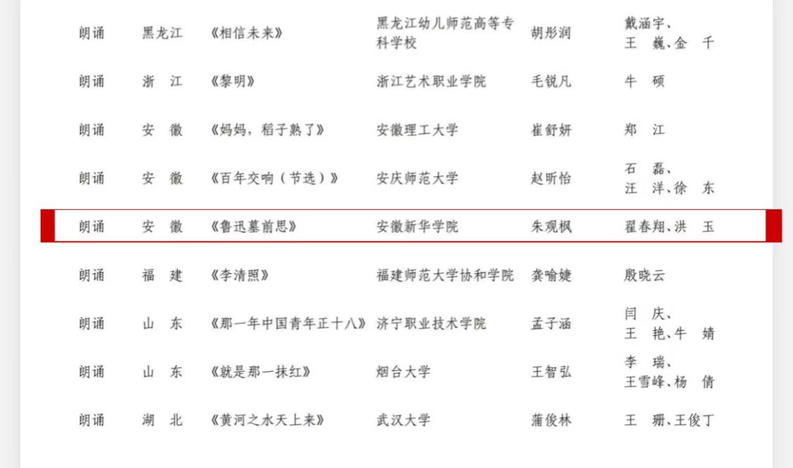 此次大学生艺术展是一场充满激情与创造力的盛会,吸引了全国众多高校学子的踊跃参与。朱观枫同学以其深情且富有感染力的朗诵,将作品中蕴含的深刻情感和思想展现得淋漓尽致,不仅展现了扎实的专业功底,更传递出对艺术的热爱与追求。
