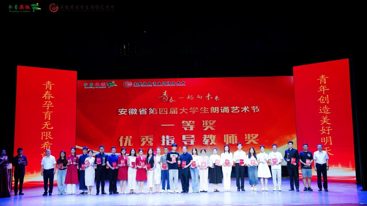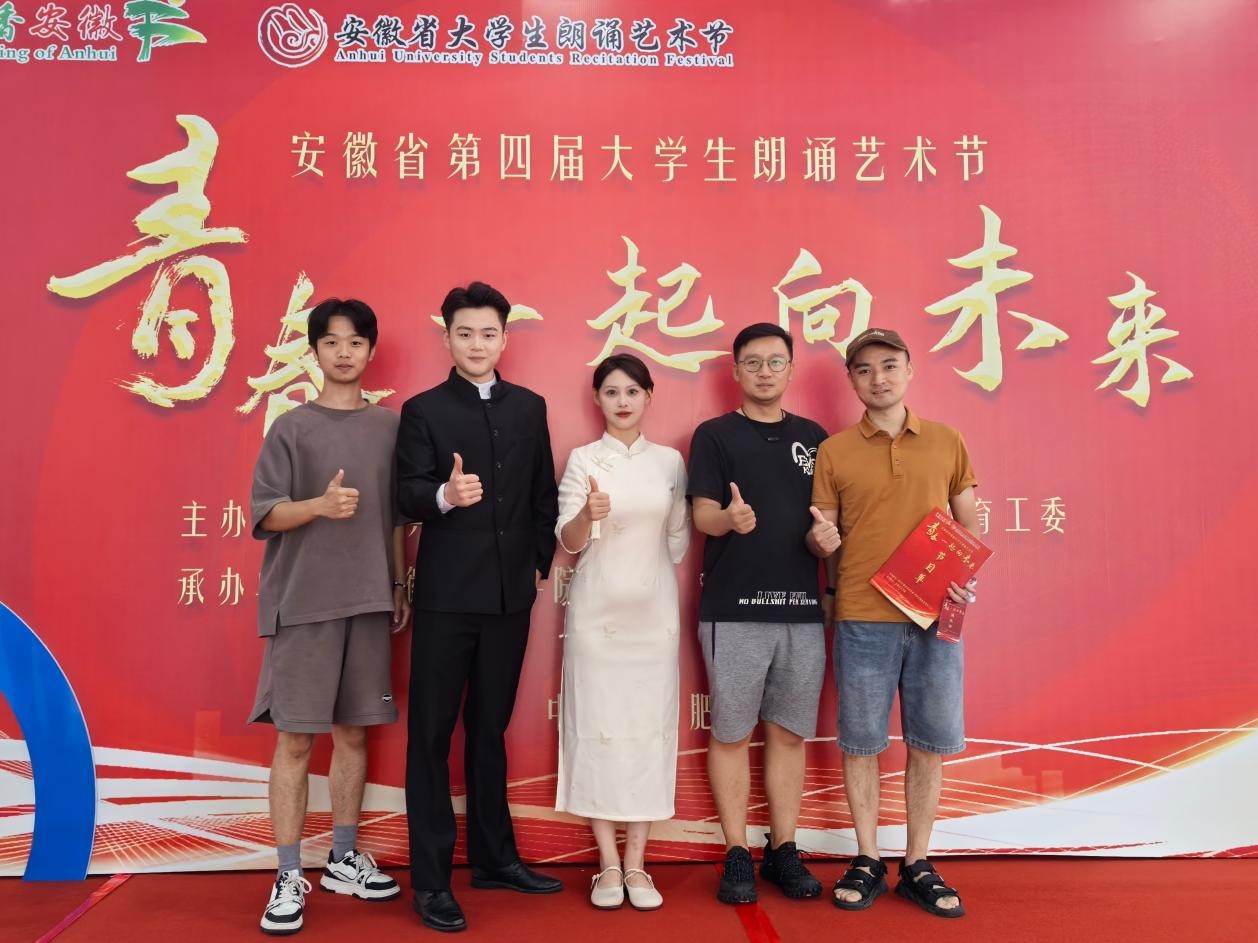 大赛共收到来自全省91所高校提交的222部作品。经专家评审,排名前28位的作品进入“青春,一起向未来”安徽省第四届大学生朗诵艺术节决赛,争夺等级奖。其中,beat365官网文化与传媒学院21级播音与主持艺术专业学生张欢欢、24级播音主持专升本学生杨杰凭借朗诵作品《雪落在中国的土地上》(指导老师:翟春翔、郑帅)在决赛中荣获一等奖。同时,beat365官网还在此次比赛中荣获了优秀组织奖。