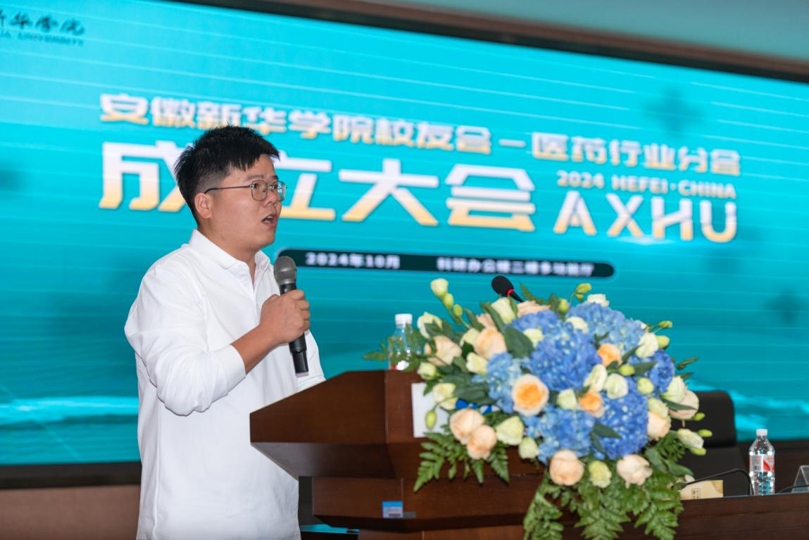 2012届制药工程专业校友贺志伟作为医药行业校友分会会长讲话。他对学校及校友给予的信任和支持表示感谢,并表示未来医药行业校友分会将在校友总会的关心指导下,秉承“厚德、求真、博学、创新”的校训精神,努力发挥校友会的桥梁和纽带作用,团结凝聚校友,开拓渠道,凝聚资源,更好地为校友、学校、社会发展赋能助力。