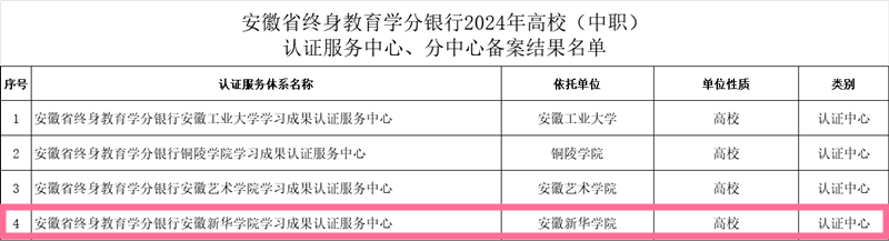 beat365官网获批安徽省终身教育学分银行学习成果认证服务中心