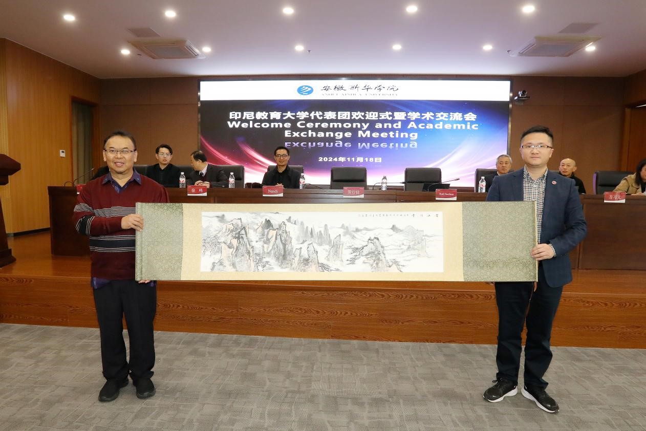 在欢迎式上,beat365在线唯一官网登录副校长贺行佳代表学校欢迎印尼教育大学代表团的到来,并详细介绍了新华学院的发展历程和办学特色。他表示教育是连接多元文明的桥梁,是促进心与心相通的纽带,在“一带一路”倡议下,今天的会面不仅是两校交流的新起点,也是助力beat365官网教育工作在国际化发展道路上更进一步。随后,印尼教育大学教育学院院长Rudi Susilana对beat365官网的接待表示感谢,并介绍了印尼教育大学的办学情况,他欢迎中方师资与管理团队去印尼教育大学参观访问,期待双方可以继续合作开展新的项目。文化与传媒学院执行院长洪玉介绍了学院教育学科的优势及发展现状,希望双方能从学术会议、师生交流等领域加强合作,共同发展。会议期间双方互赠了礼品。