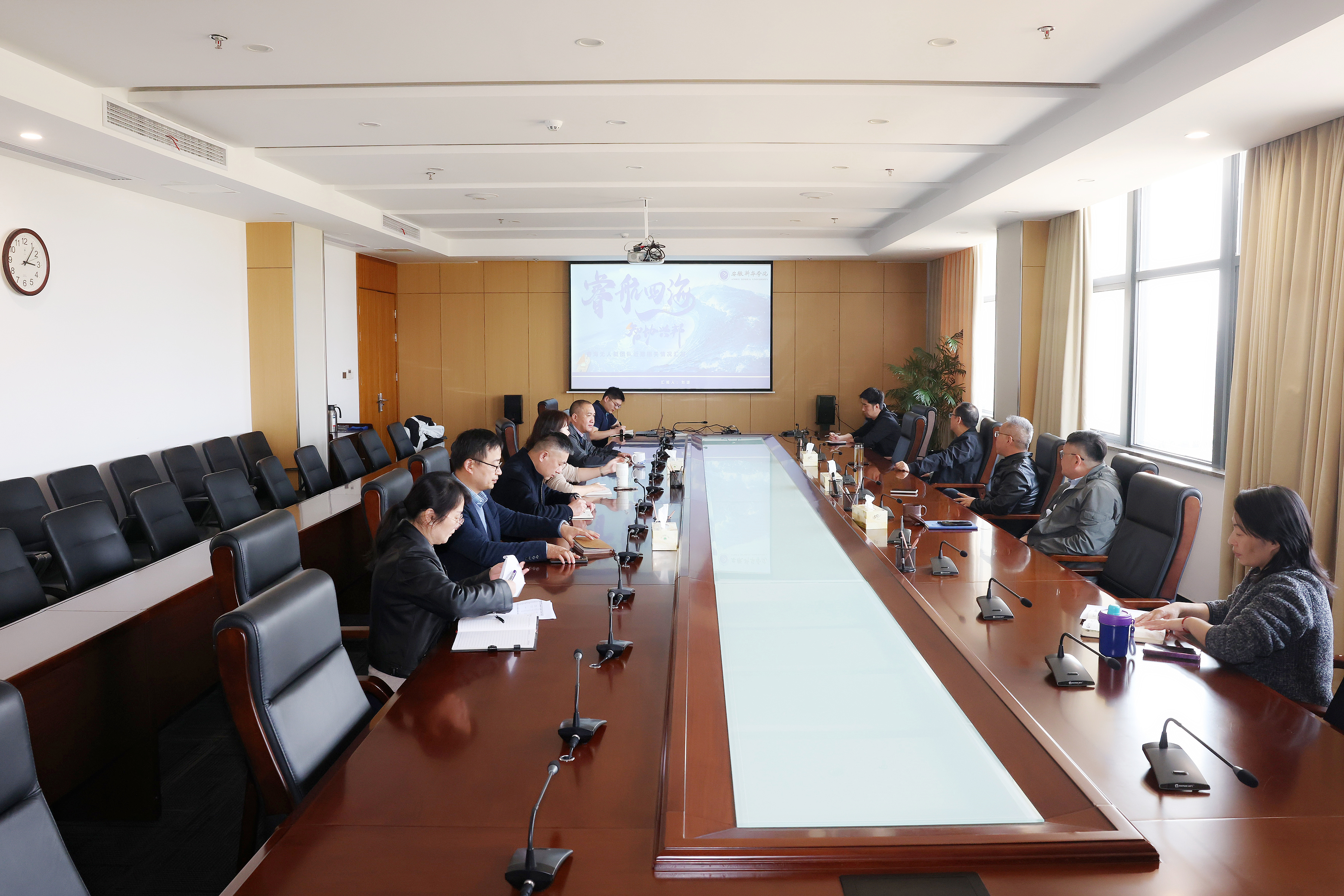 随后,调研组召开了座谈会。会上,刘源向与会人员详细介绍了睿航无人艇团队的发展历程、当前的技术研发成果、团队的人员构成及专业优势,并阐述了团队未来在技术升级、产品迭代以及市场布局等方面的发展规划。刘源表示,团队一直致力于无人艇技术的创新突破,期望在多个应用领域实现产业化应用。