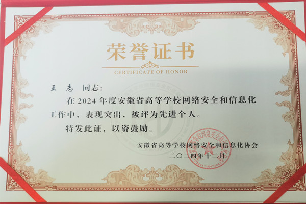 beat365官网教师荣获2024年度安徽省高校网络安全和信息化工作先进个人称号
