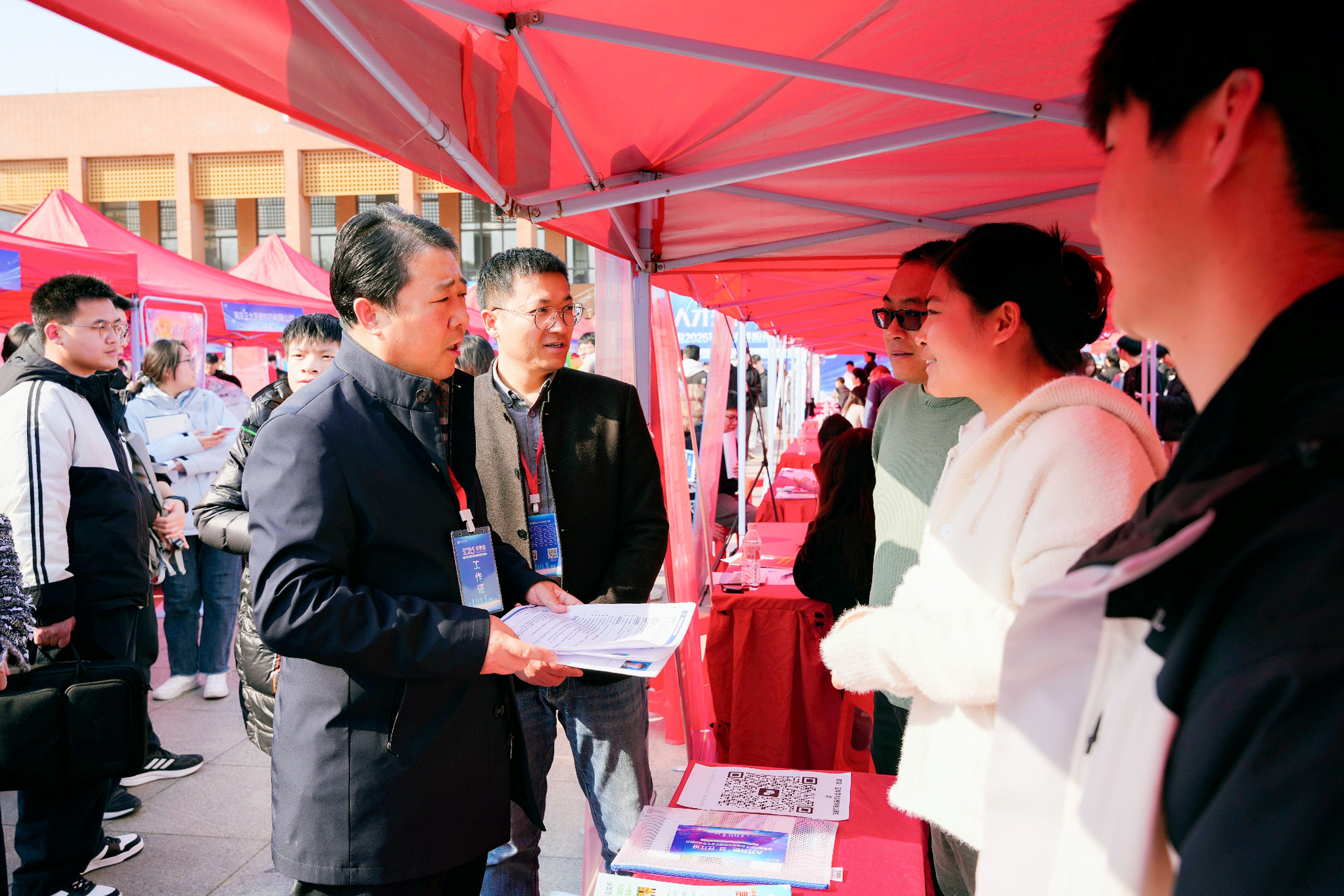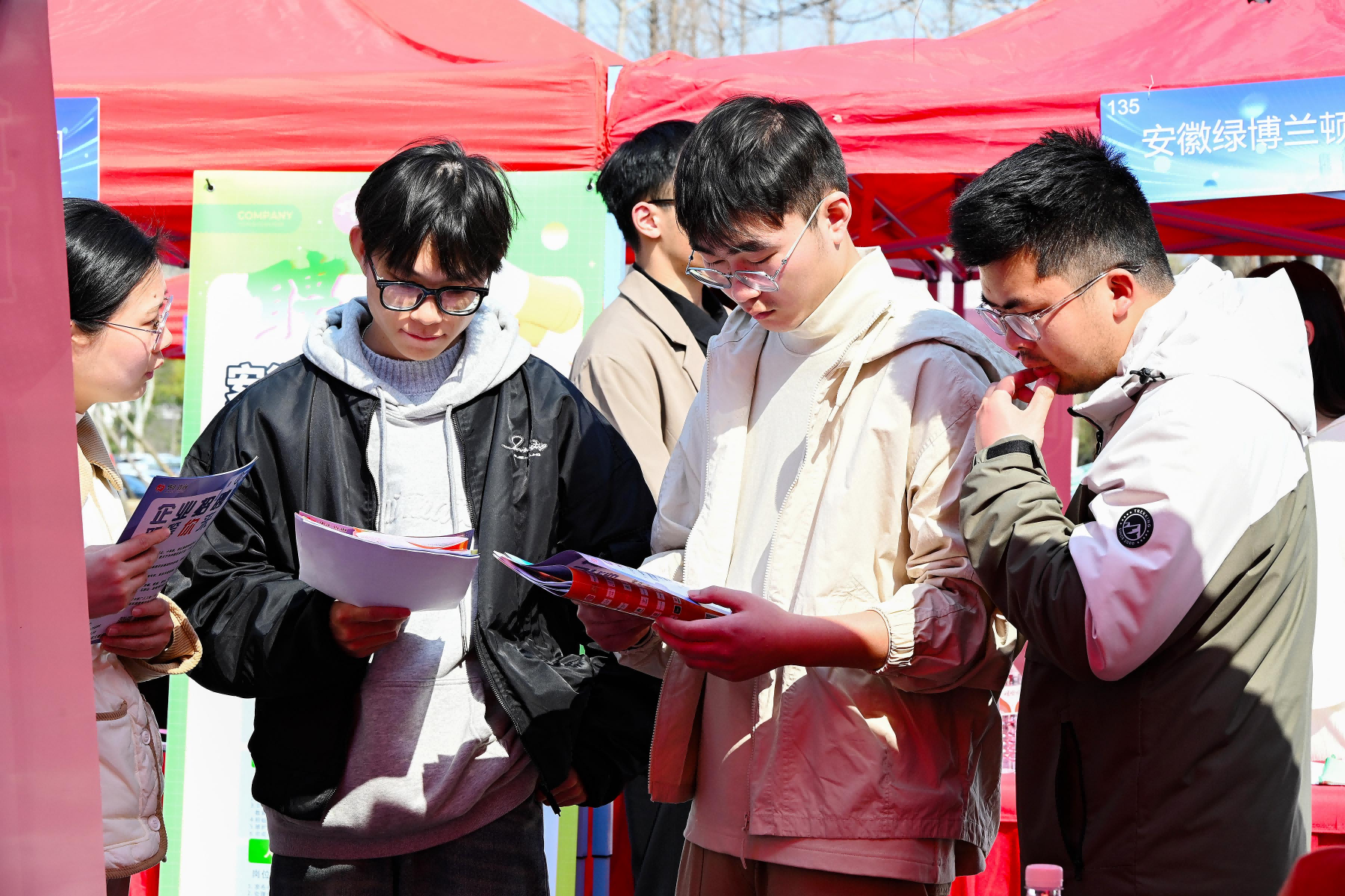 本网讯(通讯员:宋学松 摄影:融媒体工作室/张慧欣、朱雯雯、杜一晟、卢晓雪)3月19日下午,“人才兴皖、‘就’在江淮”安徽省2025年高技能应用型毕业生专场招聘会在beat365官网图书馆南广场成功举办。本次招聘会由安徽省教育厅主办,beat365在线唯一官网登录、合肥市蜀山区人力资源和社会保障局承办。省大中专毕业生就业指导中心主任张秋田,省教育厅高校学生处四级调研员黄兵、蜀山区人社局人才中心副主任赖英等一行领导莅临现场指导,省督导专员、校党委书记邸建伟,副校长王琦进及学生处相关人员全程陪同。