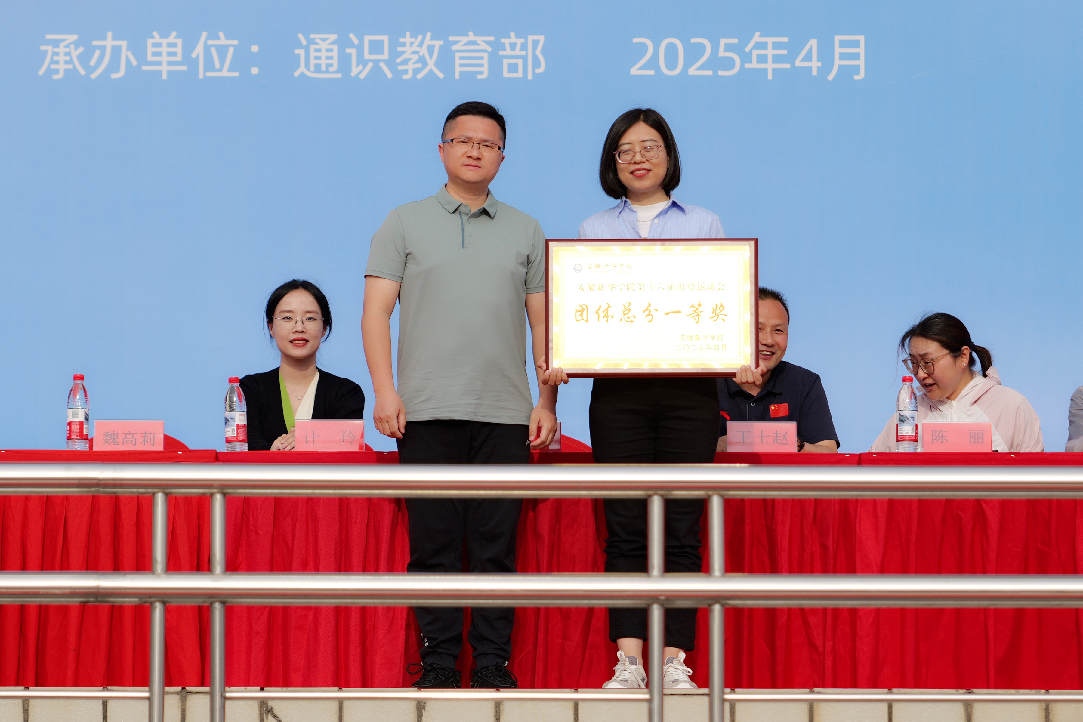 最后,贺行佳在闭幕式致辞中指出,体育精神不仅是追求“更高、更快、更强”,更是团结、包容与矢志不渝的追求!他对全体师生提出期望,一是让运动融入生活:从今天起,放下手机、走出宿舍,选择一项热爱的运动,让操场成为青春的“打卡地”;二是让合作滋养成长:将赛场上的默契与信任延续到课堂、实验室和社团活动中,让团队精神成为我们共同的底色;三是让拼搏点亮未来:铭记此刻的热血与坚持,在学习中保持“冲刺终点”的专注,在生活中展现“跨越障碍”的勇气,做全面发展的新时代青年!