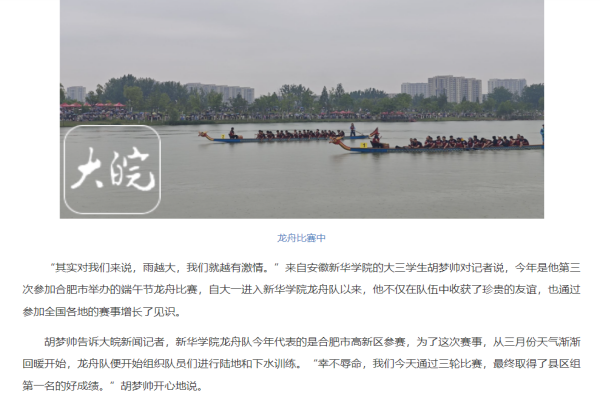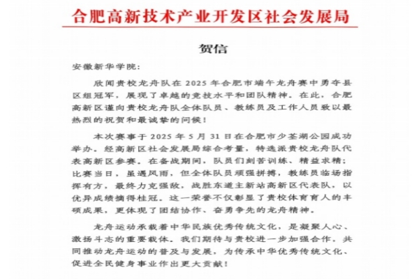 赛后,合肥市高新技术产业开发区社会发展局发来贺信,对beat365官网龙舟队的表现给予高度肯定。大皖新闻对该项赛事报道时,专门采访了beat365官网龙舟队队长,对beat365官网龙舟队取得的成绩高度赞扬。