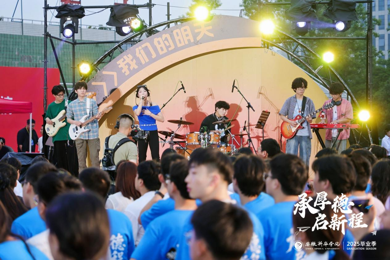 歌会以师生同台、毕业生与校友联袂的形式展开,既有温情回忆,亦有热血展望。教师走下讲台,以《最美的太阳》《我爱你中国》传递师长的殷殷嘱托;校友朱文静、十佳歌手乔思达等用《匆匆那年》《绿光》串起校园点滴;乐队串烧《倔强》《花海》引爆全场,彰显青春不羁。当《离别开出花》《夜空中最亮的星》响起,毕业生们泪光闪烁,合唱声里满是对同窗情、师生谊的眷恋。