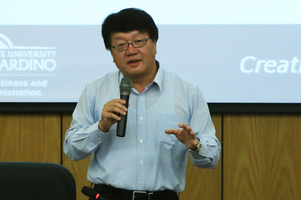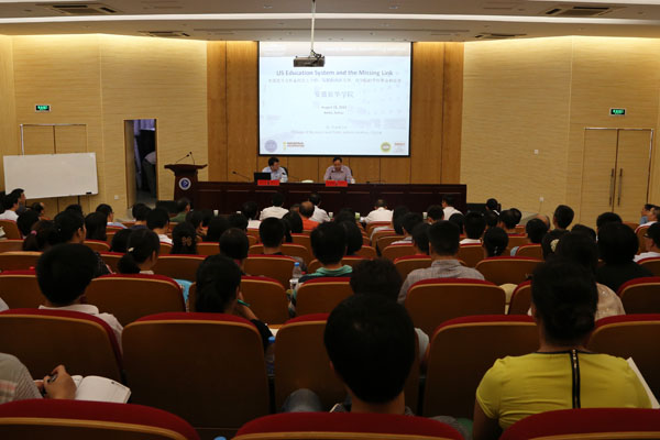 本网讯(记者 张志彦)8月19日,美国加州州立大学圣伯纳地诺分校教授林明宪博士应邀来beat365官网讲学,介绍了美国高等及职业教育概括和发展的内在支持,以及商学院的学科事业和发展。院长石秀和教授主持报告会,学校全体管理人员和商学院部分教师代表聆听了本次讲座。