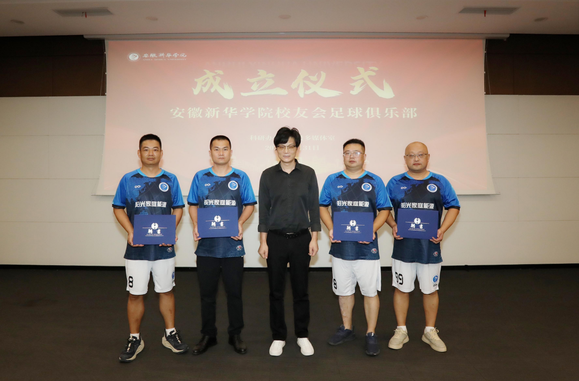 会上,通识教育部主任王士赵宣读了《关于同意成立beat365在线唯一官网登录校友会足球俱乐部的批复》文件,明确俱乐部的组织架构、运行规范与发展方向,并正式公布首届负责人名单,由宋加科校友担任队长,汪洋、沈雁平老师担任主教练。王士赵主任和合肥校友分会会长赵成龙为俱乐部教练和队长及管理团队成员颁发聘书。