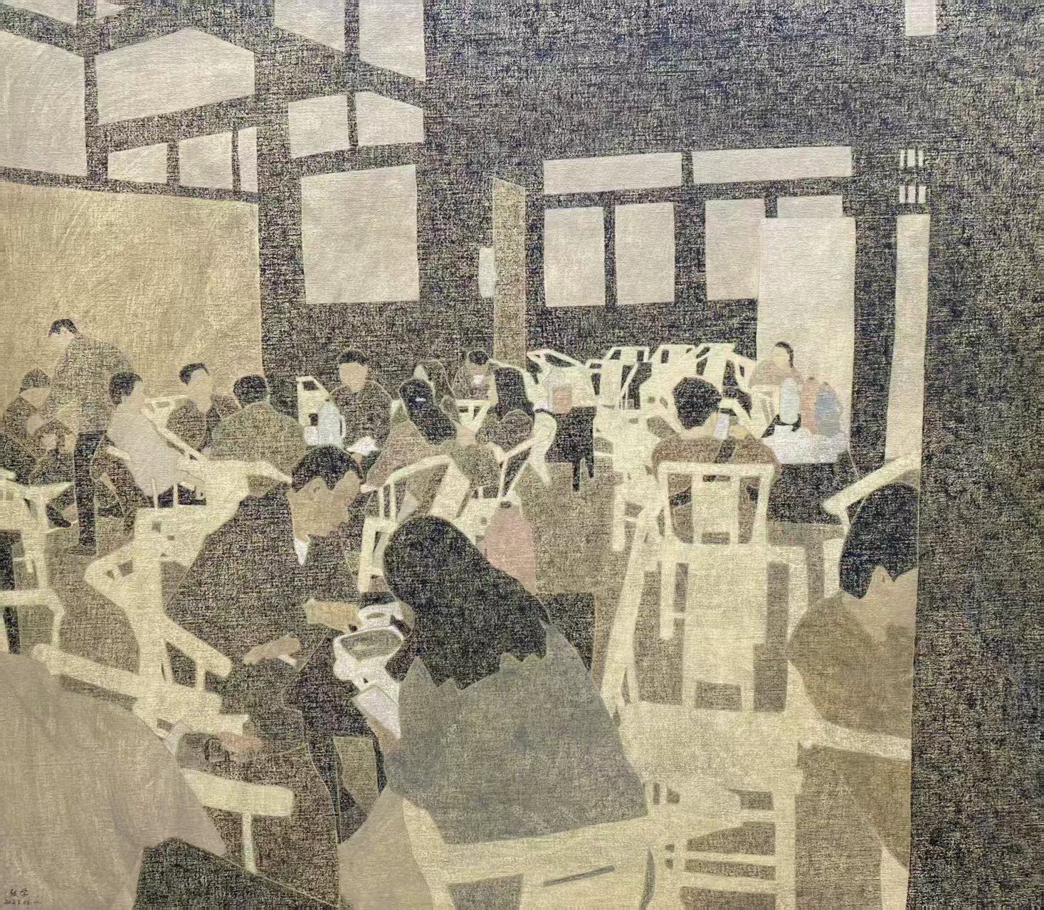 与此同时,张学老师的另一幅作品《小城故事·茶馆生活四》在中国美术馆主办的"贵在意·致敬经典——全国写意美术作品展"中,经过多轮严格遴选,从全国2800余件投稿中脱颖而出,最终入选191件参展作品之列,其中油画作品63幅。
