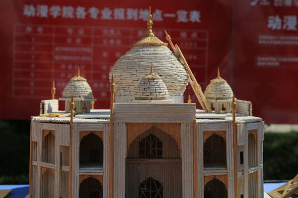 金黄色的带有建筑特色的“宝塔”成为建筑与工程协会的特色展品之一。据透露,这顶宝塔是去年参赛作品中获得一等奖的获奖作品,对于协会的意义较为重大。