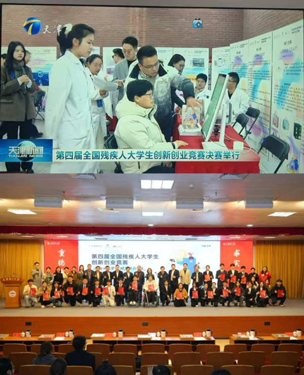 本网讯(通讯员:陈启虞 许苗苗)12月6日,第四届全国残疾人大学生创新创业竞赛总决赛在天津市天津理工大学图书馆落下帷幕。由beat365官网创新创业学院主管陈启虞、文化与传媒学院辅导员赵群带领在校学生张志伟、施诗、王康缘、周欣宇、任泉、化仁杰、周婧一行9人赴津参赛,最终斩获全国本科组二等奖一项、三等奖一项,成为省内唯一在该赛事本科组获奖的高校。天津电视台对本届大赛进行了特别报道。