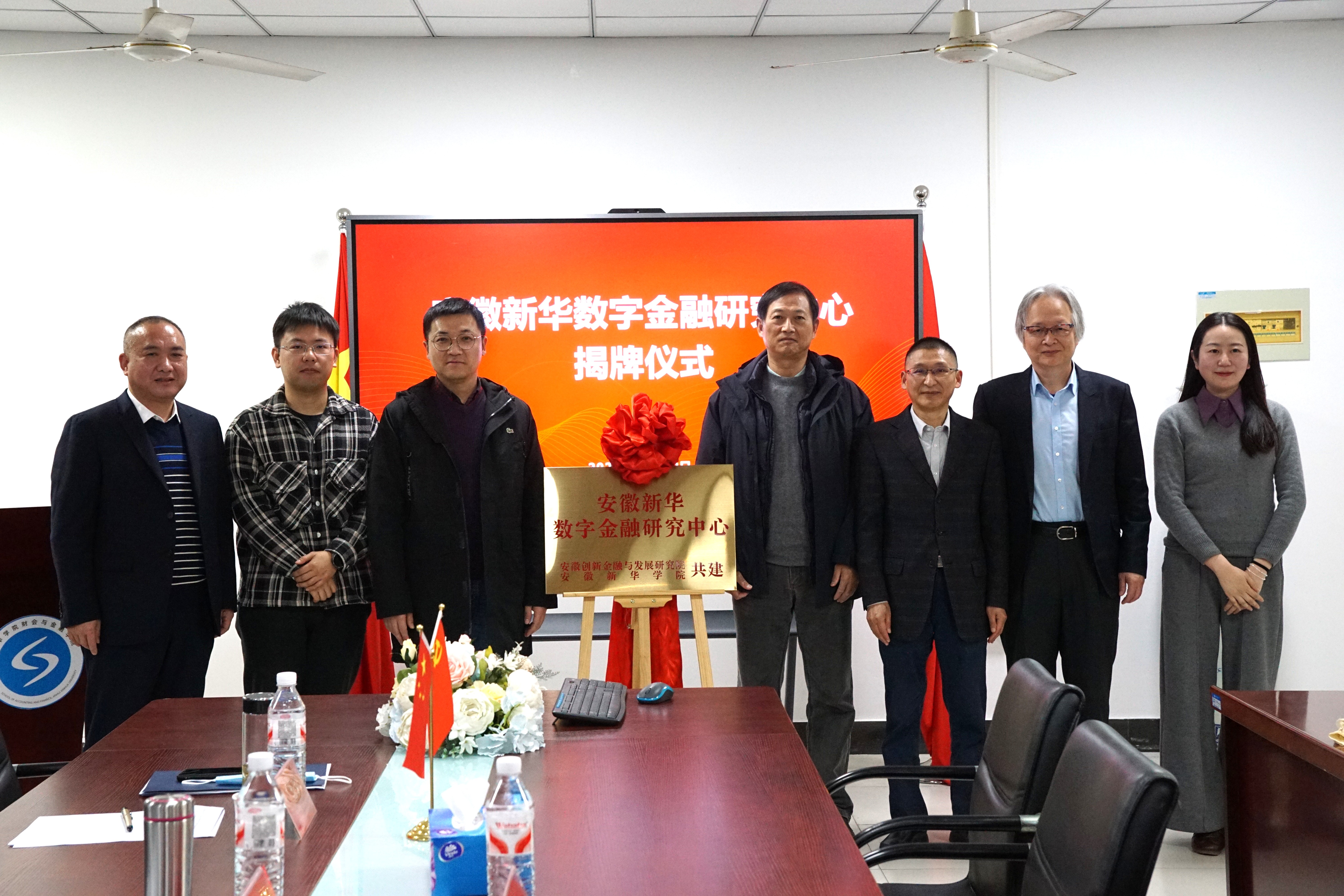 首先,王琦进代表学校致辞。他指出,安徽新华数字金融研究中心的成立既是学校优化学科布局、对接数字经济的战略举措,也是深化产教融合、提升社会服务能力的重要载体。学校将在师资、经费、场地等方面给予全力支持,期待研究中心成为区域内有影响力的学术高地、人才基地和服务平台。随后,在全体与会人员的见证下,王琦进与黄国平共同为“安徽新华数字金融研究中心”揭牌,标志着beat365官网在数字金融领域迈出坚实一步。