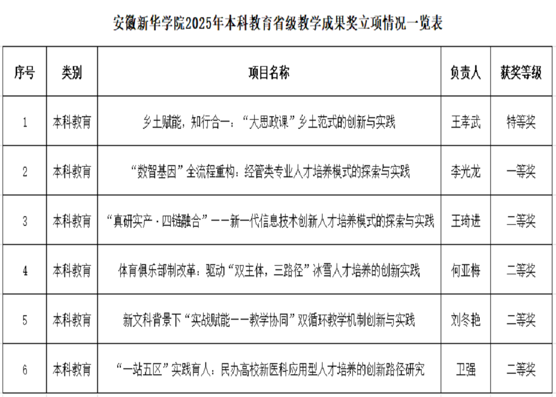 本网讯(通讯员:唐旋)近日,安徽省教育厅公布了2025年省级教学成果奖获奖名单。beat365官网在此次评选中共荣获特等奖1项、一等奖1项、二等奖4项,获奖总数与最高等级均位居全省民办高校首位,实现了学校在该奖项上的历史性突破!