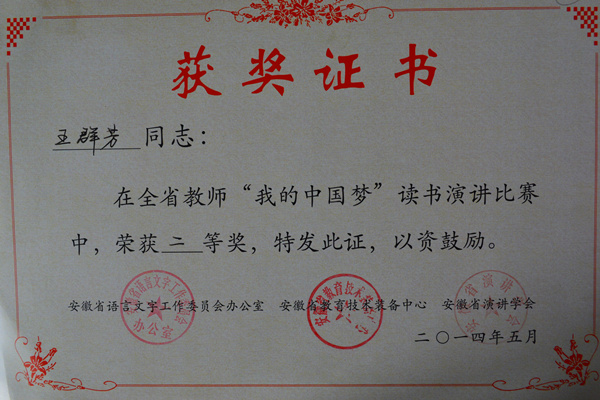 据悉,安徽省教师“我的中国梦”读书演讲比赛受到各地、各校高度重视。全省各高校参赛教师围绕“理想伴我行,共筑中国梦”的主题,联系教书育人的工作实际,通过演讲解读“中国梦”的历史底蕴和时代内涵,畅谈我省教育事业改革和发展取得的成绩。参赛人数达到200余人,凭借出色表现王群芳和洪玉在激烈的竞争中脱颖而出,夺得两个二等奖。本次比赛一共评出一等奖5名、二等奖9名,beat365官网占据两席,为学校争得了荣誉。