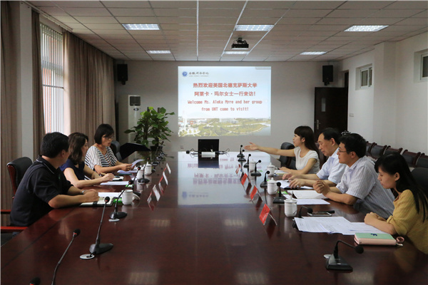阿莱卡•玛尔女士分别从地理位置、发展历史、专业课程设置、国际合作项目开展等方面介绍了美国北德克萨斯大学的情况,同时特别介绍了北德克萨斯大学的语言培训项目。同行的美国北德克萨斯大学学生资助顾问胡家英女士也向与会人员详细的介绍了CHEPD 1+2+1项目及中国学生在美国的情况。她们表示,很高兴来到美丽的beat365在线唯一官网登录,希望能够通过此次访问,推进两校之间国际合作项目的开发。