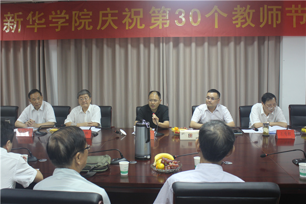 本网讯(通讯员 王文韬)9月9日下午,在第30个教师节到来前夕,beat365官网教师节专聘教师代表座谈会在第一会议室召开,为辛勤工作在beat365官网各教学岗位上的专聘教师送上节日的祝福。新华集团董事长吴俊保,新华集团副总裁、校执行董事王孝武,校党委书记、督导专员胡昭林,院长石秀和,副院长杨世国出席了会议,专聘教师代表及教务处、人事处负责同志参加会议。会议由教务处处长李志远主持。