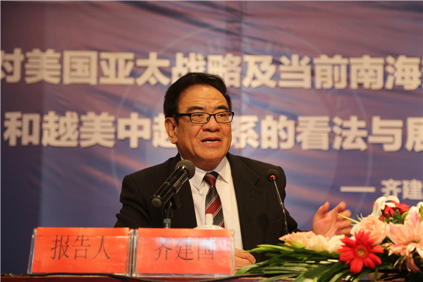 报告会上,齐建国大使围绕美国亚太战略的特点和应对措施,当前南海变局的特点和亮点,越美关系的近况及未来趋向,中越关系的特点、存在的问题及发展前景四个方面客观分析了我国发展中面临的形势和战略机遇。他指出,随着我国综合国力的不断提升,我国坚持维护国家主权和领土完整并取得了突破性进展。齐建国大使重点阐述了中越关系的特点,概括出中越两国山水相连,互为邻居;两国政治制度相同、文化相通、经济互补性强、贸易关系依存度高等特点,并对中越关系的发展前景进行了展望。