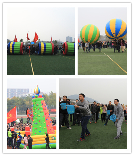 趣味运动会的比赛共设7个团体项目,教职工们积极参与,踊跃报名。共有来自全校19个分工会共360名运动员参加比赛。