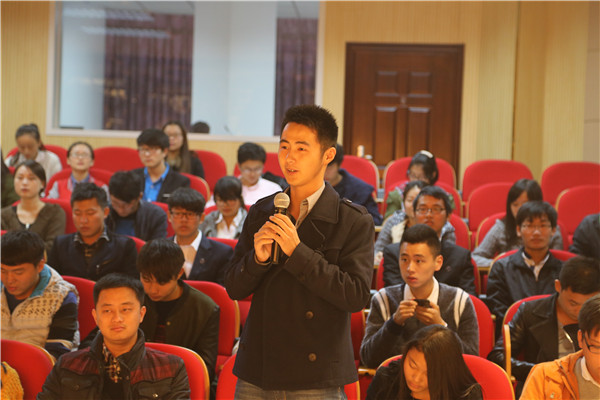 座谈会以交流问答的形式进行,beat365官网学生干部代表就自己在社团组织中遇到的问题向四位书记进行咨询和提问,四位书记都针对问题提出了自己的见解并进行解答和指导。会上,来自青年志愿者协会的学生干部程雪景就志愿服务这一方面的问题向北京城市学院团委书记姜涛进行咨询。她提出:“学校应该以什么样的方式让学生参与到志愿服务当中?”姜涛书记以北京城市学院为例,他表示2005年北京城市学院在青年志愿者协会的基础上成立了城市义工服务学校,全面实施“城市义工6小时服务计划”,同时也明确规定了每名学生每学期至少参加6小时义工服务,借助网络考核等制度对学生进行考核,借此来激励学生们加入到志愿服务的队伍中来。将大学生的生活与志愿服务相结合,促进学校的发展。