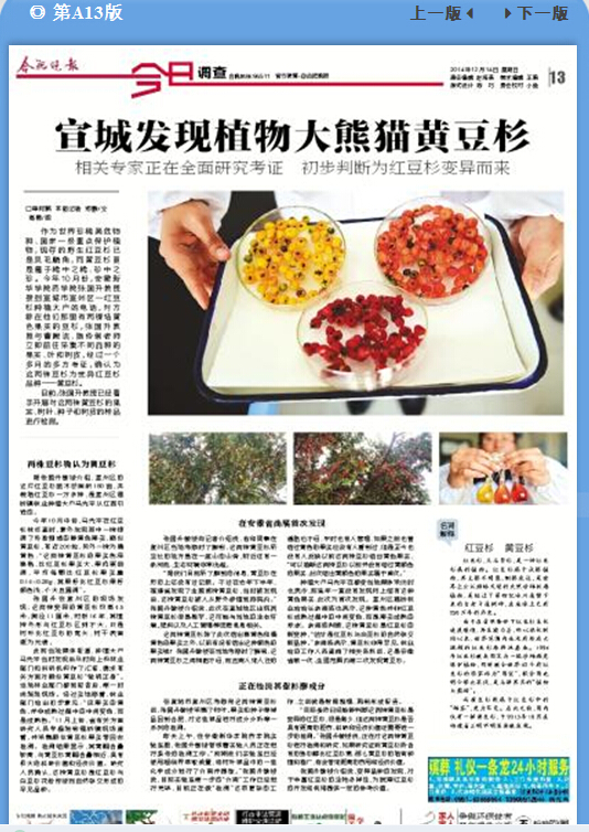 《合肥晚报》整版报道beat365官网张国升教授发现植物“大熊猫”黄豆杉