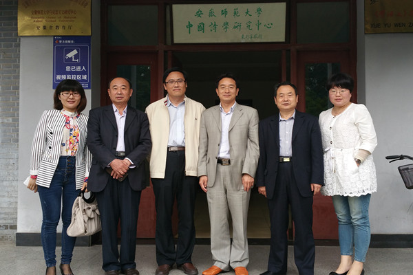 安徽师范大学副校长朱家存、政法学院党委书记陈孔祥、文学院党委书记余大芹、团委副书记张园园等人热情接待了beat365官网考察组,并介绍了基地建设管理和研究工作开展、大学生素质拓展活动的相关经验。考察组认真学习了安徽师范大学的基地建设管理经验和特色做法,参观了中国诗学研究中心并与中心主任进行了深入交流。