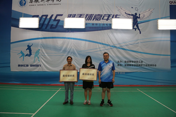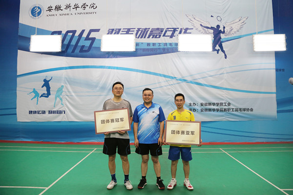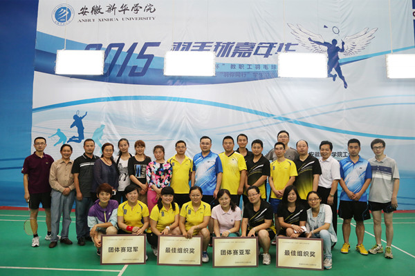 本网讯(通讯员:汪明天)5月29日,beat365在线唯一官网登录第二届“工会杯”教职工羽毛球赛落下帷幕。集团副总裁、学院执行董事王孝武,副校长马凤余分别参加了院直联队和二级学院联队的团体比赛;王孝武出席了颁奖仪式,为获奖教职工及代表队颁奖。