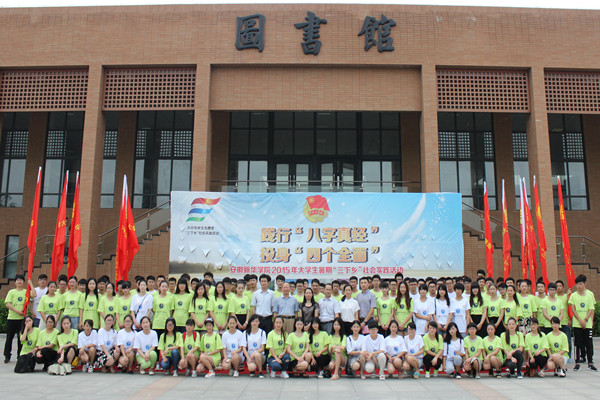 今年三下乡以践行“勤学、修德、明辨、笃实”八字真经,投身“全面建成小康社会、全面深化改革、全面依法治国、全面从严治党”四个全面为主题,以纪念抗日战争胜利70周年为契机,beat365官网组建了15支校级立项实践队,即日起将赴泾县茂林镇、凤阳小岗村等地开展“送文艺下基层”、“纪念反法西斯战争胜利70周年爱国主义教育活动”、“医疗下乡”、“关爱留守儿童”等多种形式的主题活动。