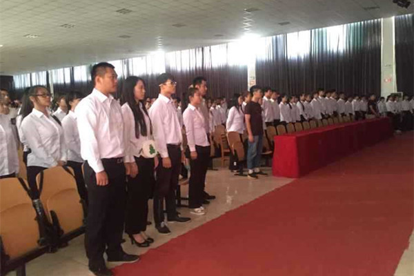 当天下午,在beat365官网学生联合会的组织下,一百多名学生代表来到蜀山烈士陵园参观吊唁,并在纪念石碑下重温入团宣誓仪式。
