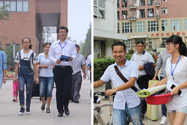 来自青年志愿者联合会的孙瑞雪正在带领一名新生前往宿舍9号楼报到,她一边帮新生拿着生活用品一边告诉记者:“今天我已经接待了很多新生,看到他们顺利入住宿舍,我特别高兴!”这名被帮助的新生也开心地说:“学校真大呀!刚下车的时候本来还有点担心,现在有了这么亲切的学姐帮忙,我很快对学校有了全面细致地了解。”