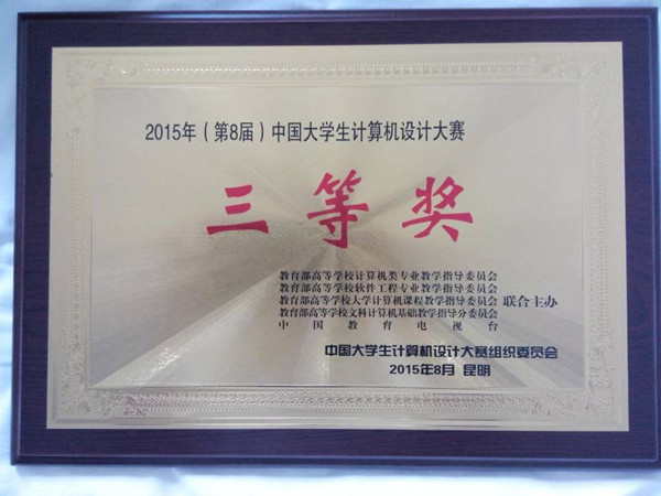 “中国大学生计算机设计大赛”由教育部高等学校计算机科学与教育技术指导委员会、教育部高等学校计算机基础课程教学指导委员会等部门联合主办,大赛设“软件和应用开发类”、“数字媒体设计类”以及“计算机音乐创作类”三个组,分为省级赛和全国赛两个阶段,参加院校共计500余所,参赛人数多达5000人。