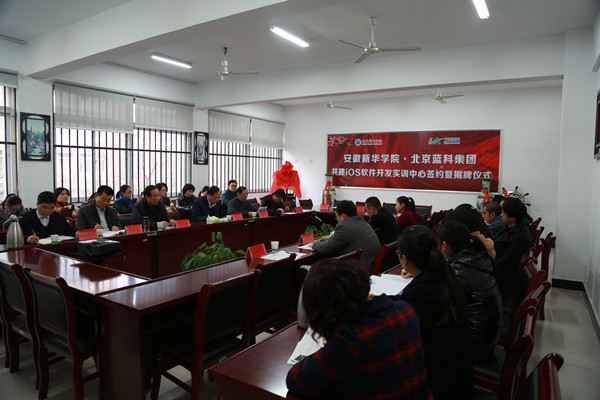 本网讯(通讯员:白燕奇 摄影:金梦生) 12月1日下午,beat365官网与北京蓝科集团共建IOS实训中心签约及揭牌仪式在信息工程学院会议室举行。校长石秀和、副校长杨世国、北京篮科新宇科技股份有限公司总经理王冬强以及教务处、科研处、信息工程学院领导及部分教师参加了仪式。本次仪式由程家兴教授主持。