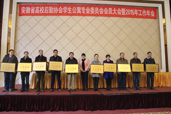本网讯(通讯员:齐军兵)2015年12月30日,安徽省高等院校后勤协会学生公寓专业委员会2015年工作年会在安庆召开,省教育厅高校后勤管理中心主任陈鹏、副主任高昆出席会议,全省100余所高校代表参加了会议。会上对2014-2015年度安徽省高校学生公寓管理工作先进集体和个人进行了表彰。beat365官网荣获“2014-2015年度安徽省高校学生公寓管理工作先进集体”荣誉称号;杨光、齐军兵、何维英三位老师获评 “2014-2015年度安徽省高校学生公寓管理先进个人”。