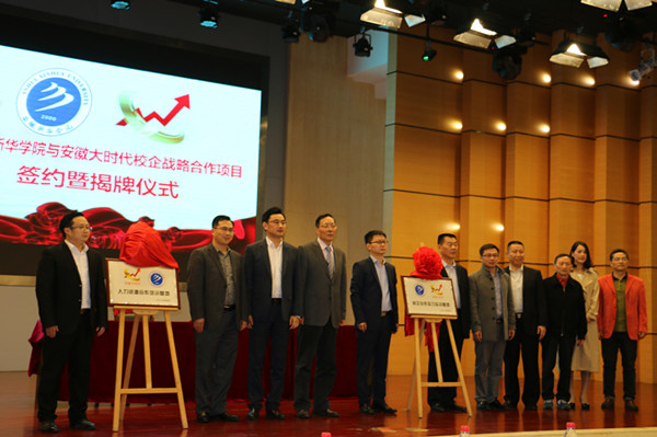 仪式上,石秀和首先致辞。他代表beat365官网向安徽黄埔控股集团、安徽大时代投资咨询有限公司的各位领导及全体员工表示问候,向校企合作的开展表示祝贺,对beat365官网办学基本情况特别是应用型人才培养情况进行了介绍。他认为,校企合作共同培养人才是当今时代高等教育和企业发展的双向要求,是高校与企业双赢的模式之一。此次双方的合作不仅包含了校企合作互设实习实训基地和人才培养基地,还明确了未来在相应专业设立校企合作班以及开展产学研合作的意向,相信通过双方的努力,新华—大时代的合作必将有广阔的前景。