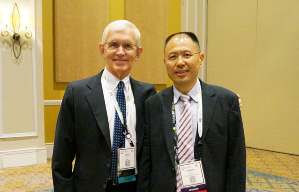 演讲前,美国私立大学联盟主席Steve Gunderson先生专程会见吴俊保董事长。