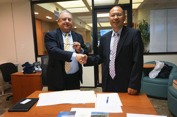 吴俊保董事长和凯泽大学创始人、校长凯撒先生签订战略合作框架协议后,合影留念。