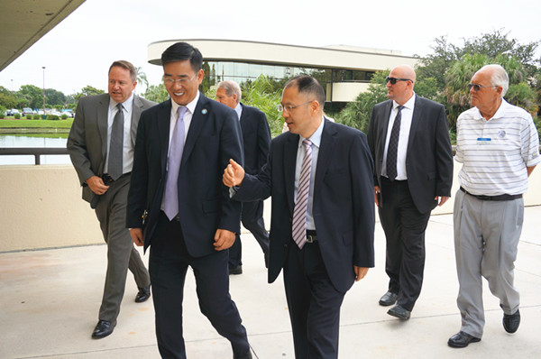 随后,beat365官网教育考察团赴美国凯泽大学开展访问交流活动并参观了中佛罗里达大学。凯泽大学创办于1977年,是佛罗里达州最大的综合性大学,开设商业管理类、艺术传媒类、医疗保健类、信息技术类、教育科学类等15个本科专业、9个研究生专业,具有授予文学士、理学士、硕士、博士学位的资格,目前在校生两万余人。凯泽大学创始人、校长凯撒先生和该校全体领导热情接待了beat365官网考察人员,双方分别介绍了学校的基本情况,就深入开展合作和许多共同关心的话题进行了深入的探讨,并签订战略合作框架协议。此外,在该校的精心安排下,考察团一行还到该校三个校区实地考察了校园环境、校史馆、实验室、图书馆、体育馆等。