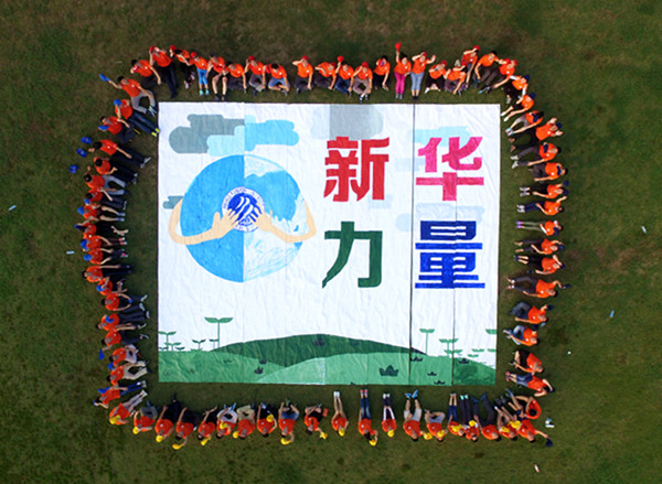 户外拓展环节中,参训学员组建成八个小组,通过团队协作,共同完成了一幅约100平米的巨画创作,描绘和呈现出中层干部队伍的 “新华力量”。
