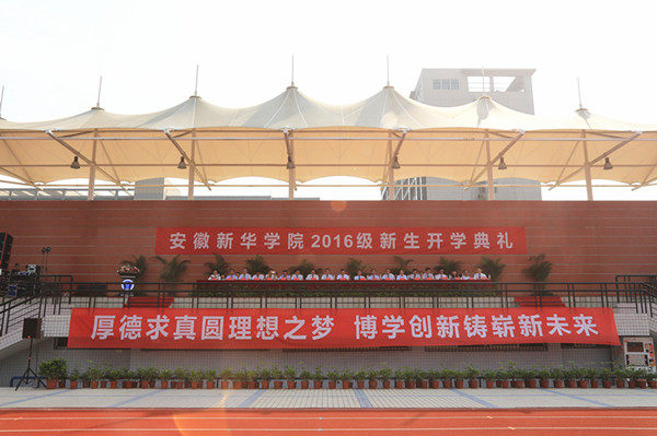 2016级新生还举行了入学宣誓仪式,“新华学子在此庄严宣誓,我们将秉承‘厚德、求真、博学、创新’的校训精神,志存高远,敢于担当,爱国爱校,尊师重教,知行合一,立志成才,甘于奉献,勇于创新,做一个守纪、诚信、明礼、文明的当代大学生!”宣誓声响彻整个新华校园,2016级全体新生满怀期望、带着憧憬与梦想在华园扬帆起航。