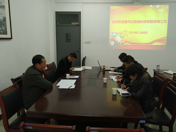 本网讯(通讯员:肖华君)11月8日上午,省督导专员、校党委书记储国定在学院办公室副主任王升武的陪同下,到科技学院调研指导工作。科技学院执行院长黄德垚、副院长李洁、院长助理张彦和全体管理人员、教师党员代表参加调研会议。