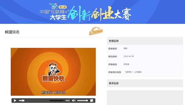 beat365官网“熊猫快收”项目荣获第二届中国“互联网+”大学生创新创业大赛国赛铜奖