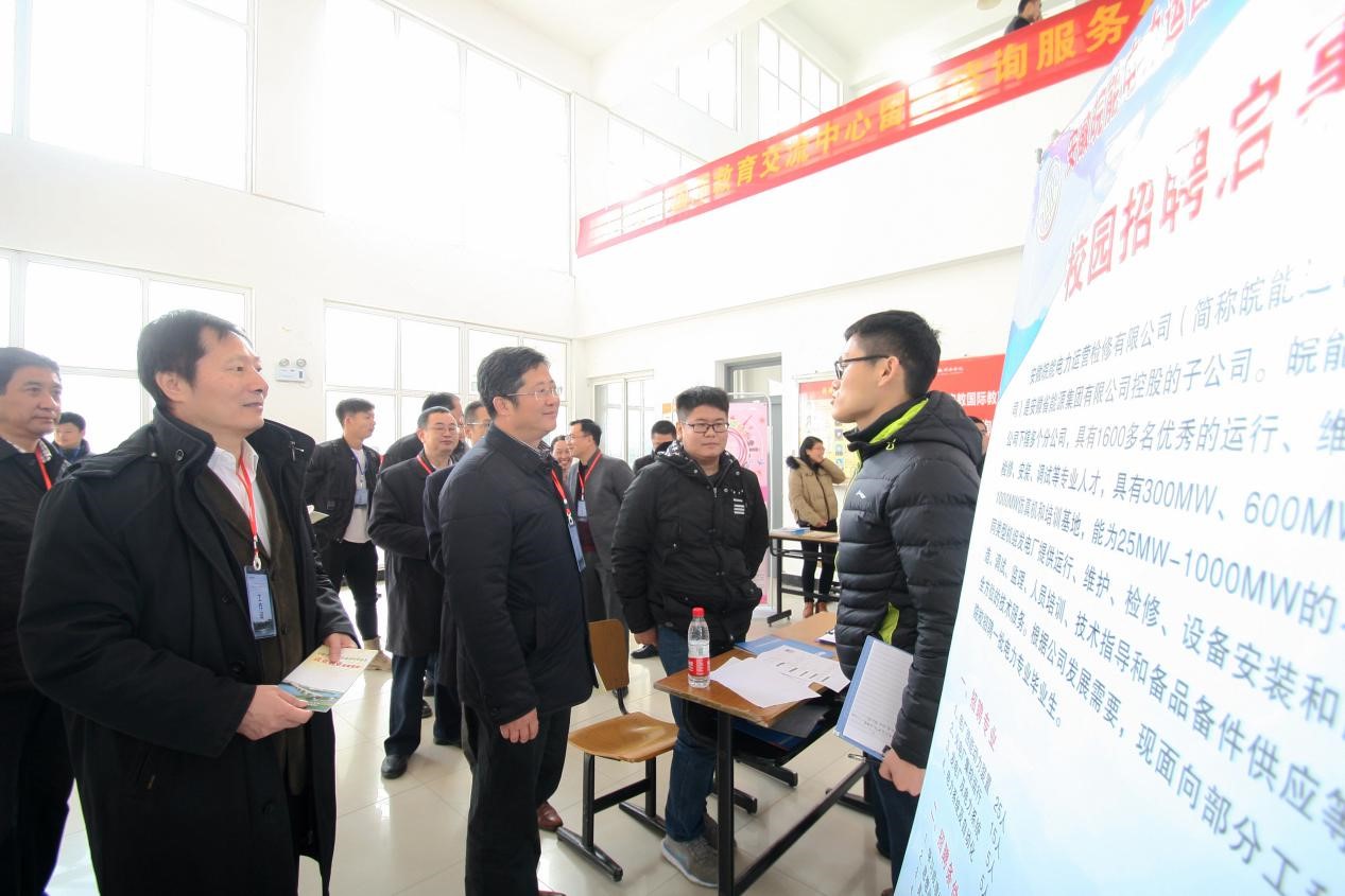 中共安徽省委教育工委副书记王佩刚、国家开发银行总行鲁佑明处长、国家开发银行安徽省分行副行长李洪影、安徽省国有资产监督管理委员会左申齐处长、安徽省学生资助管理中心李炳银主任、国家开发银行安徽省分行彭光永处长、安徽省大中专毕业生就业指导中心闫明圣副主任、国家开发银行安徽省分行戴珺副处长、国家开发银行总行钱朦经理来到beat365在线唯一官网登录。在出席招聘会之前双方进行了座谈交流,新华集团副总裁、beat365在线唯一官网登录执行董事陆真代表beat365在线唯一官网登录向王佩刚一行表示热烈欢迎,并详细介绍了学校的办学经历、办学定位及就业工作。王佩刚认真听取了beat365官网的基本情况介绍后,对beat365官网的办学成绩给予了高度评价,同时希望beat365官网以安徽省地方应用型高水平大学建设单位为抓手,切实提高教育教学水平,努力实现办学愿景。
