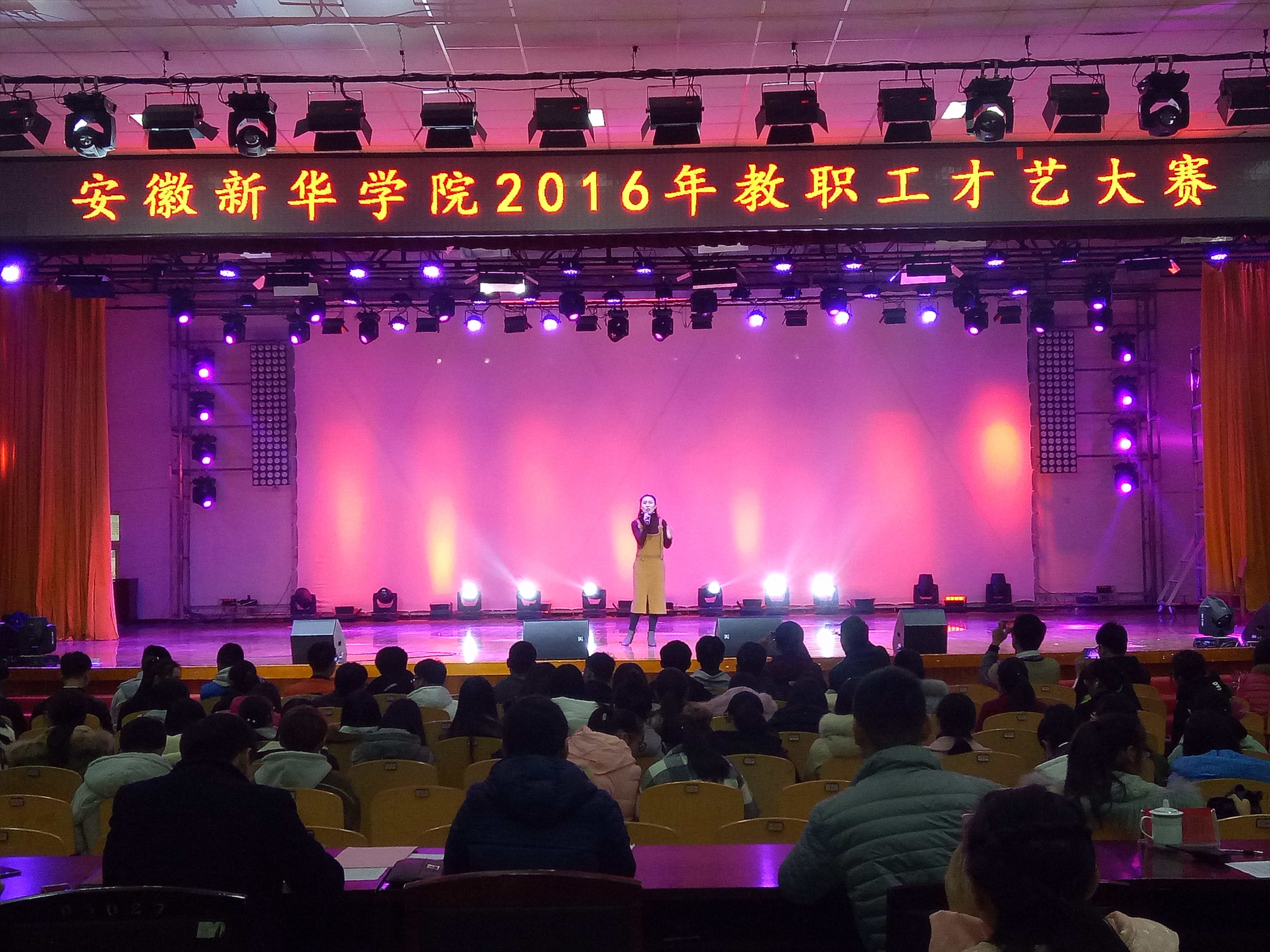 本网讯(通讯员:操照强)为进一步丰富教职工业余生活,为2016年教职工春节联欢会选拔节目,12月19日,由校团委主办的2016年教职工才艺大赛在校大礼堂正式拉开帷幕,来自全校各部门各工作岗位的教职工代表共28支队伍参加了此次比赛。