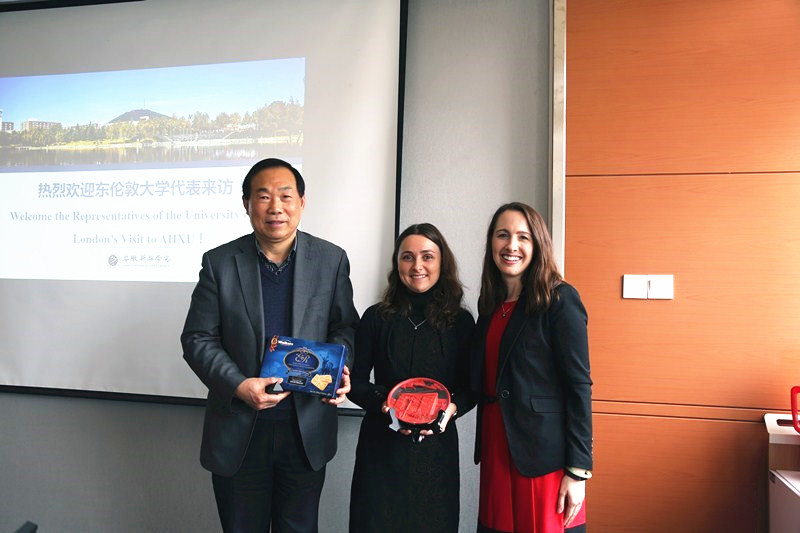 会议结束后,杨世国与卡洛琳交换了校际交流礼物,并合影留念。
