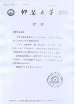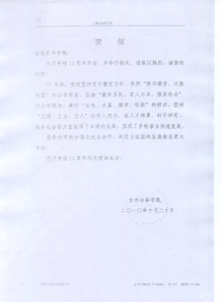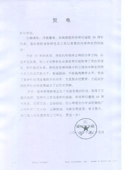 在全院师生共庆华园10周年华诞之际,省内外各大高校也纷纷发来了贺信,向我院建院10周年表示热烈的祝贺!
