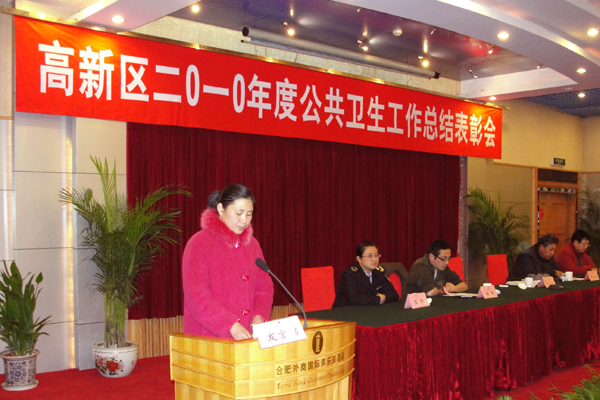 12月21日总务处相关负责人赴合肥市高新区社会事业局参加2010年度公共卫生工作总结表彰大会。总结表彰大会在合肥恒悦国际外商俱乐部酒店有限公司举行。总务处副处长冯希明代表学院在会上作为先进单位代表做了交流发言。