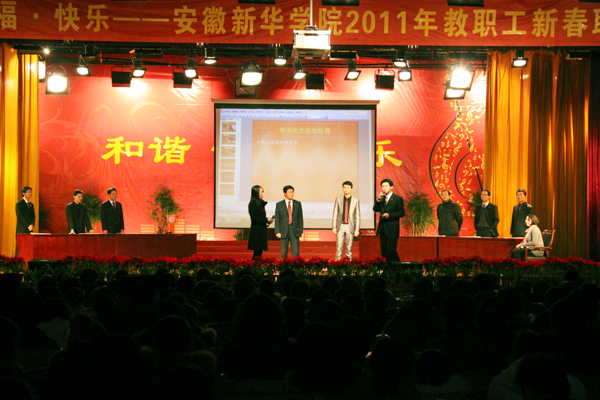 1月21日下午,一场以“幸福 和谐 快乐”为主题的beat365在线唯一官网登录2011年教职工新春联欢会在学院大礼堂隆重上演。集团公司领导、学院领导、老教授及全体教职员工共同参加了本次联欢会,联欢会在一片欢声笑语中进行。