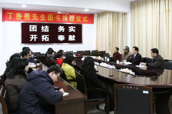 2月23日下午,学院在第二会议室举行了图书捐赠仪式。合肥五中退休教师丁赉禧先生向我院图书馆捐赠了一批自己珍藏的优质图书和期刊。该批书刊共计五百余册,是丁老师历经多年,通过多种不同渠道收集或自己购买的,凝聚了多年心血,是一批以社会科学内容为主的高质量图书,尤其是其中的文学类文献,如《新文学史料》、《中国现代文学资料丛书》等,更是精品。这批捐赠图书特别是一些馆内未收藏且市场上缺售的图书,对图书馆的文献资源建设具有重要意义。