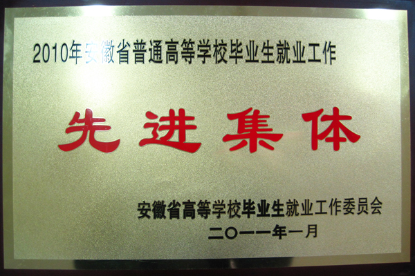 学院荣获“2010年安徽省普通高等学校毕业生就业工作先进集体”称号