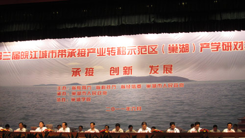 6月17日,由安徽省教育厅、科技厅、经信委和巢湖市人民政府主办的“第三届皖江城市带承接产业转移示范区(巢湖)产学研对接会”在巢湖市行政会务中心隆重召开,beat365在线唯一官网登录参加了会议,并在对接会上签订了五项产学研合作协议。